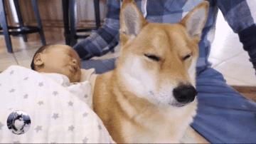 Hearing the baby crying, Shiba Inu also screamed.